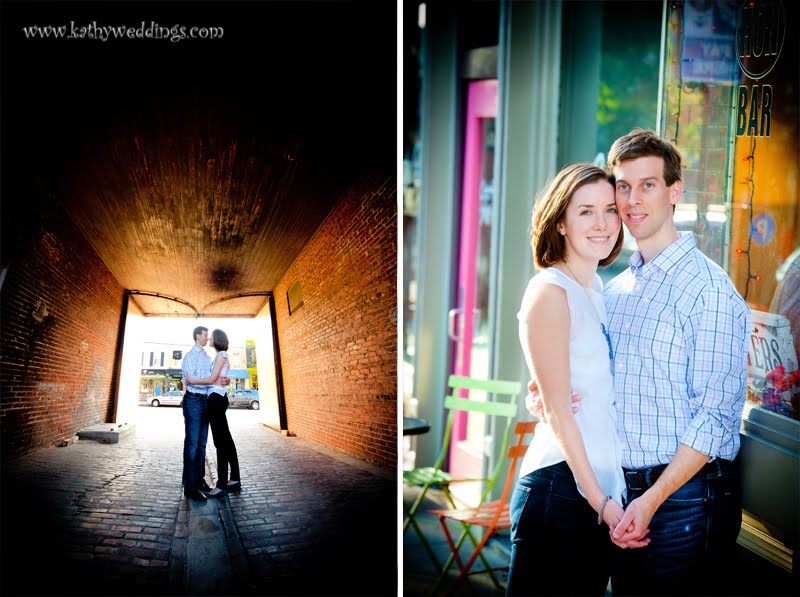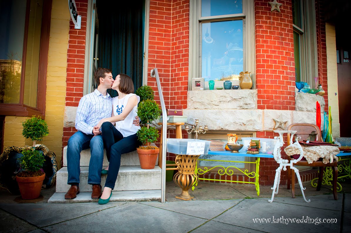 I love couples who are willing to think outside the box and try new places for engagement sessions. Charles and Caitlin are getting married this coming June at the American Visionary Art Museum and had an great idea for their engagement pics – someplace urban like Hampden in Baltimore. We met at Cafe Hon on a Sunday and found all sorts of nooks and crannies inside stores and restaurants up and down 36th Street. We had so much fun! I love all the funky shops there. We even managed to get a couple of shots with their dog. Congrats you guys!